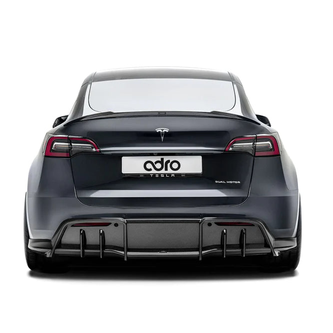 The ADRO carbon fiber rear diffuser was handcrafted using only the highest quality real carbon fiber to ensure that it's the lightest and strongest diffuser that you can get for the Model Y. It's also engineered to decrease drag and increase airflow underneath the car, allowing you to potentially extend the range of your Model Y. You can also pair it with the rest of ADRO's full carbon-fiber Model Y body kit to get the most exotic looking Model Y on the road and to be the envy of your friends.